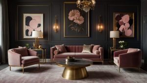 Use charcoal on walls or upholstery to ground the space. Layer in dusty rose with soft furnishings like cushions, curtains, or an accent chair. Keep things balanced by using pale neutrals (like soft grey or ivory) as a backdrop.